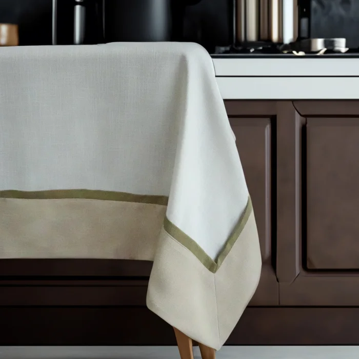 Kumaş Keten Dokulu Renk: Kırık Beyaz, Bej ve Zeytin Yeşili Malzeme: 100 Polyester 180x280 cm (70 x 110 inç)
