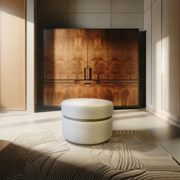 Taban ve iki kumaşı ayıran kısım ahşap ile tasarlanmıştır