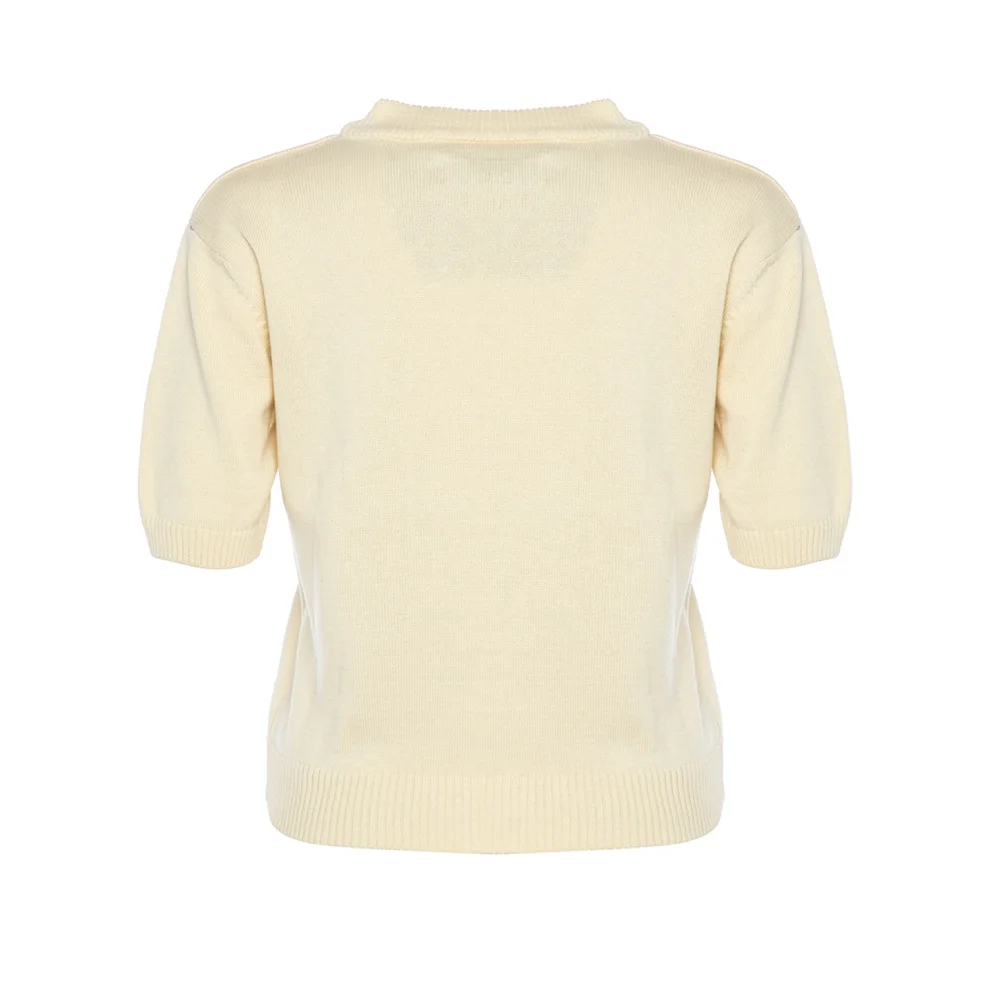Kemik rengi bisiklet yaka ve kısa kollu,