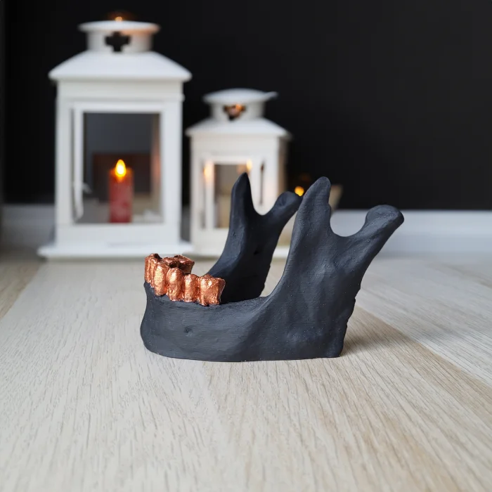 Yükseklik: 7,5 cm, Genişlik: 10 cm, Derinlik: 10 cm Biopolimer malzeme ile çevre dostu ve sürdürülebilir üretim Çene kemiği tasarımıyla şık ve işlevsel telefon tutacağı Farklı ve pratik ev dekorasyonu arayanlar için ideal Modern ve özgün bir dekoratif aksesuar olarak mükemmel