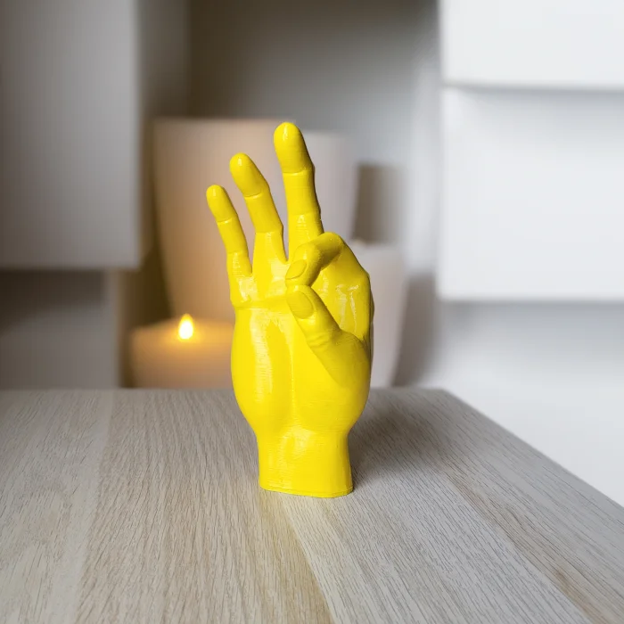Yükseklik: 20 cm, Genişlik: 10 cm, Derinlik: 8 cm Biopolimer malzeme ile çevre dostu ve sürdürülebilir üretim Okay işaretiyle pozitif enerji ve onaylayıcı sembol Farklı ve anlamlı ev dekorasyonu arayanlar için mükemmel Modern ve özgün bir dekoratif aksesuar olarak ideal