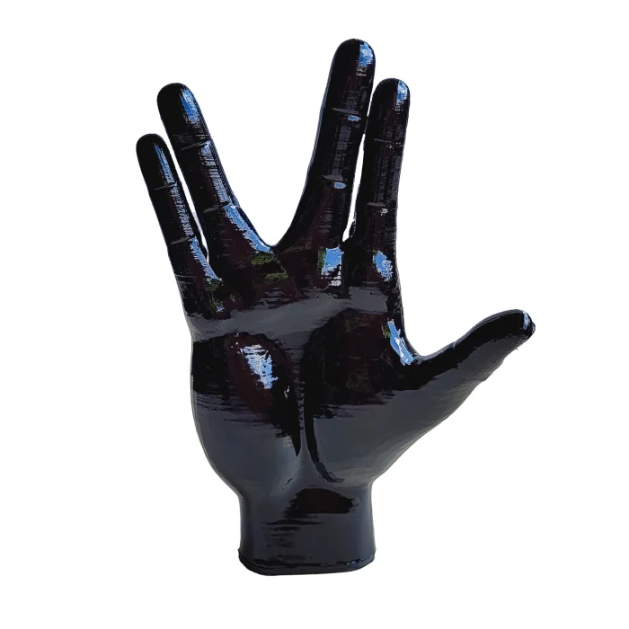 Yükseklik: 20 cm, Genişlik: 14 cm, Derinlik: 6 cm Biopolimer malzeme ile çevre dostu ve sürdürülebilir üretim Spock işaretiyle bilim kurgu severlerin gözdesi İkonik ve anlamlı dekoratif aksesuar arayanlar için mükemmel Modern ve özgün ev dekorasyonu için ideal bir parça