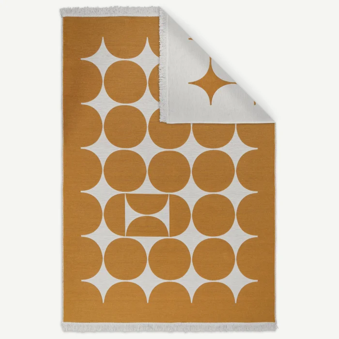 Geri dönüşümlü pamuktan makine dokuması çift yönlü vegan kilim.