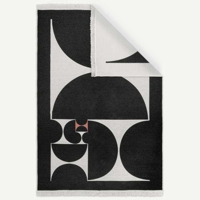 MidCentury Golden Ratio Kilim Serisi Geri dönüşümlü pamuktan makine dokuması çift yönlü vegan kilim. Tasarımcı : Uğur Şayan Menşei : Uşak / Türkiye Bu ürün Retrospektif™ grubu ürünüdür. Tüm hakları Atölye Başka'ya aittir.