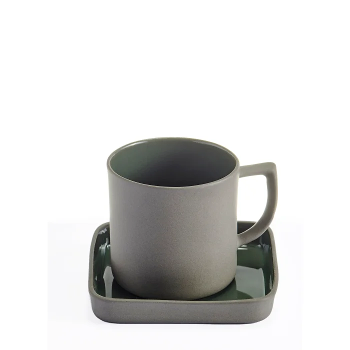 El yapımı Limoges Porselen Antrasit Yeşil Renk Türk Kahvesi Fincan Takımı.