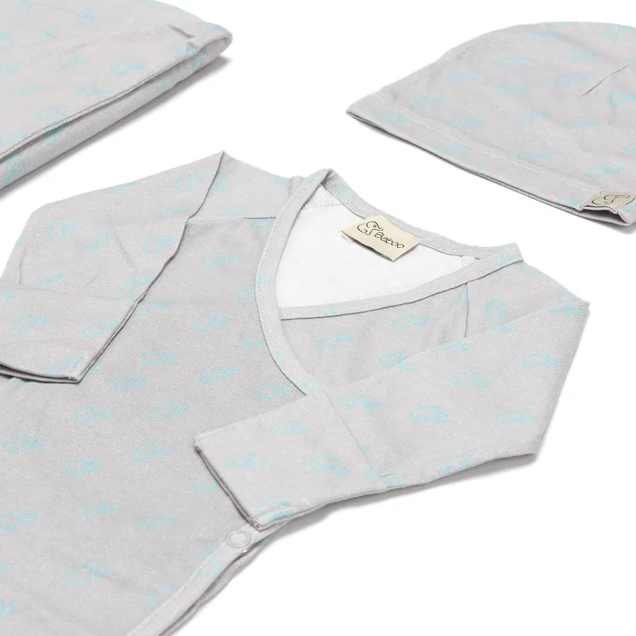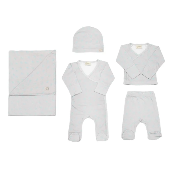 5'li Hastane Çıkışı Seti, yumuşacık dokusu ve modern tasarımı ile bebek alışverişinizin güzel bir parçası olmanın yanı sıra harika bir hediye seçeneği de sunar.