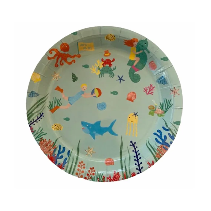 8’li karton tabak seti. Ürün boyutu: 22 cm x 22 cm. Denizaltı dünyası desenli, özel tasarımdır. Gıdaya temasa uygundur.