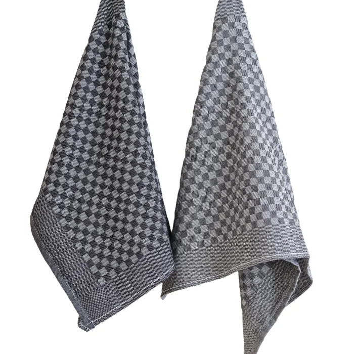 Kareli 2'li Antrasit-Gri Mutfak Kurulama Bezi 40x60 cm