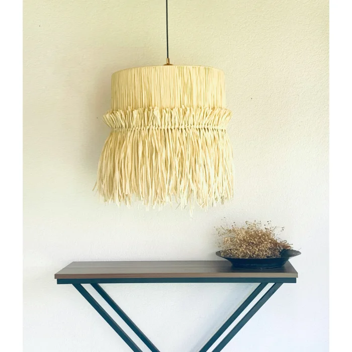 Kağıt rafya ile sarmalanmış püsküllü aydınlatma
