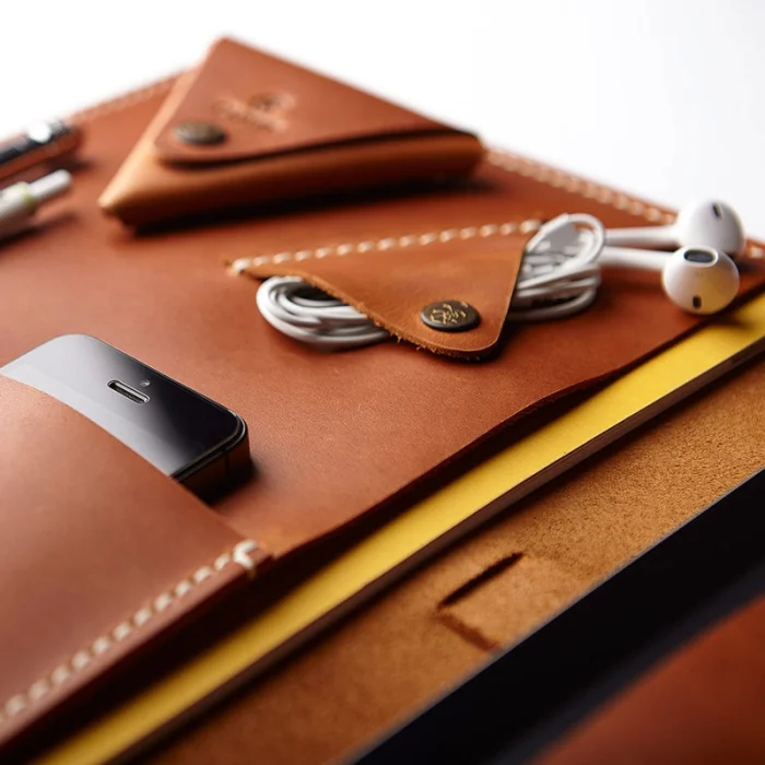 Dana derisinden tümü elde kesilen parçalar, tamamen el saraç işçiliği ve mumlu iplik ile dikilimiştir. Metal çıtçıt kapama ve rivetlerle kullanım kolaylığı ve dayanıklılığı arttırılmıştır. El işçiliğinin tabiatına ve kullanılan derinin benzersiz doğasına bağlı olarak her bir ürün standart olmanın aksine kendine özgüdür. Ürünlerde kullanılan metal aksesuarların kaplama renkleri bu fotoğraftakilerden farklılık gösterebilir.