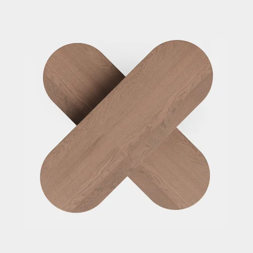 Adından da anlaşılacağı üzere 2 eş geometrinin zıt yönlerde katmanlı bir şekilde basit bir strüktür ile bir araya getirilmesi ile oluşturulmuş bir sehpa modülüdür. 2 kademeli yüzeyler, aynı tasarımın çoklu yerleşiminde bir birileri ile ilişki kurmalarına olanak vermektedir. Kullanım yüzeylerindeki zıt yönlü ve farklı yükseklikte konumlanma, tasarıma dinamizim ve karakter sağlamaktadır.