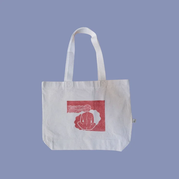 Tek renk, organik boya ile linol kalıpla üretilmiştir. 100%Pamuk Standart kulp uzluğu (60 cm) - Örgü kumaşından dikilmiş. 320 gr kanvas kumaştan imal edilmiştir. Boyutları: 48 x 41 x10 cm ( +- 0,5 cm )