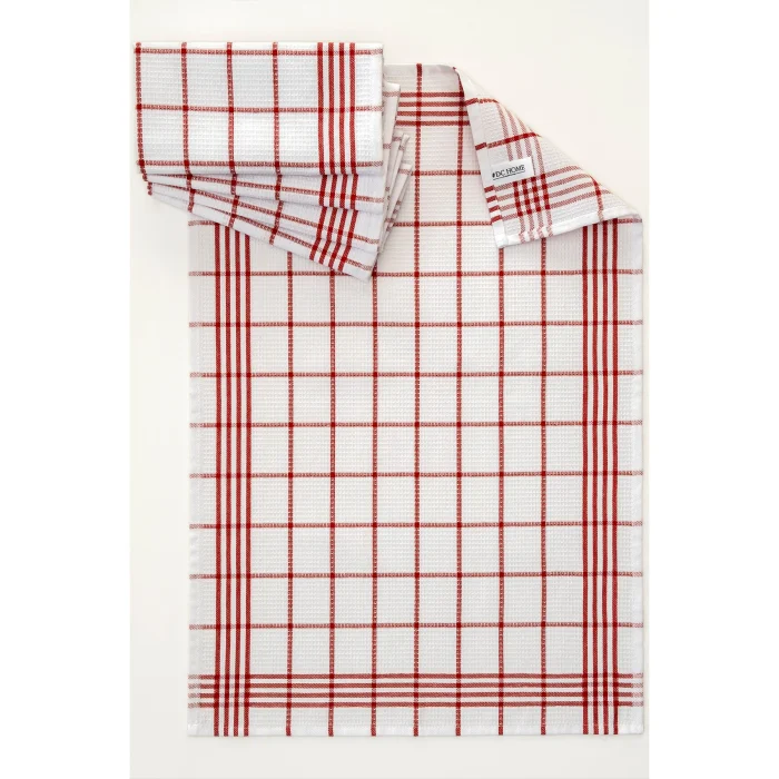 Kırmızı çizgi desenli 100% pamuktan üretilmiş yumuşacık pike dokuma kırmızı kurulama bezi. Mutfakta büyük yardımcınız. İster servis peçetesi ister kurulama bezi olarak kullanılabilirsiniz. Kurulama bezi olarak çok verimlidir.