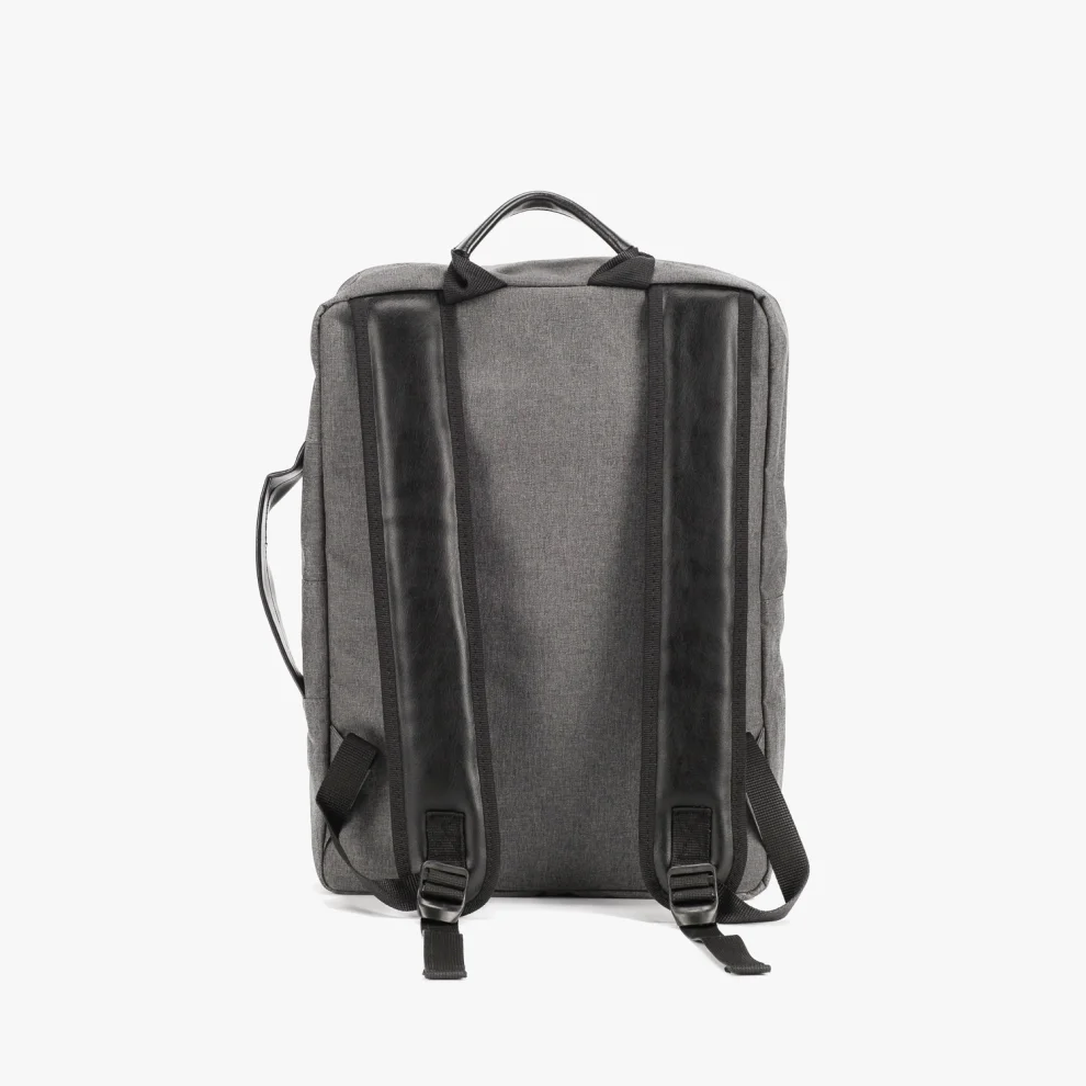 Su itici polyester kumaş, iki yöne açılıp kapanan su itici fermuarlı, fermuarlı ön cep, iç kısımda ekstra telefon ve anahtar gibi aksesuarlar için iki bölmeli cep, iç kısımda ekstra tablet & laptop bölmesi, vücut ölçüsüne göre ayarlanabilir omuz askısı, sırt bölgesini rahat hissettirecek dolgu malzemeli, yatay olarak kullanım için yan kısımda el ile tutma yeri, suni deri omuz askıları ve el tutma yeri