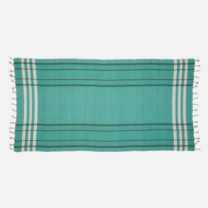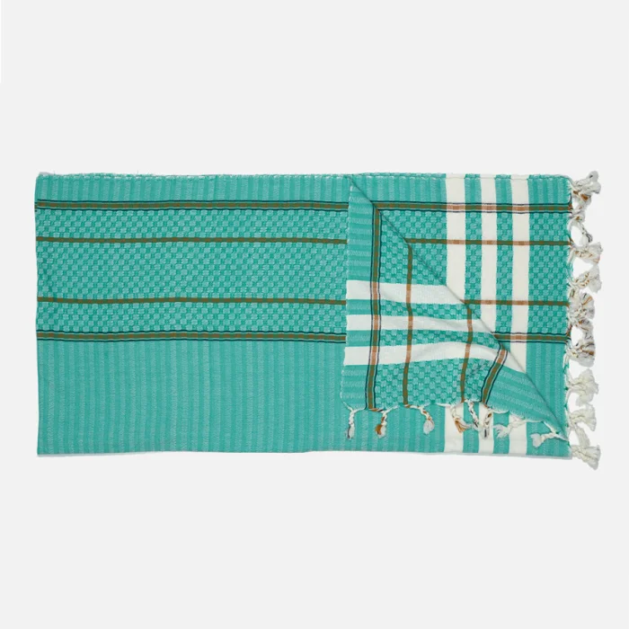 Yesil ve bordo tonlarinda kareli dokuya sahip, el dokumasi, sal olarak da kullanilabilir.
