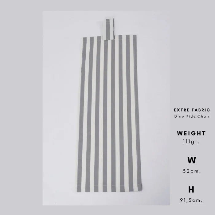 Çocuk koltuğu minderi gri-beyaz çizgili - iç mekan döşemelik kumaş details: Lenght 91,5* Width 32cm./111gr.İç mekan döşemelik kumaşlar, pamuk ve polyester içeriğine sahiptir. Döşemelik kumaşlarımızın su, leke ve yağ itici özelliği bulunmaktadır.Tüm ürünlerimizin kumaşları 30 derecede hassas yıkama ve ütü yapmaya uygundur. Ağartıcı ve çamaşır suyu kesinlikle kullanılmamalıdır. LÜTFEN DİKKAT: Yedek çocuk koltuğu minderi miz sadece kendi sattığımız çocuk koltuklarımızın ölçüsüne uygun özel üretimdir. Hem natürel ahşap hem de beyaz boyalı ahşap Dino Kids Furniture çocuk koltuklarımız da rahatlıkla kullanabilirsiniz. Yedek minder seçeneği koltuğu uzun yıllar rahatlıkla kullanmanıza, ürünün görünümünü tazelemenize ve değişiklik yapabilmenize yardımcı olacaktır. Ürün: Dino Çocuk Koltuğu Yedek Minder