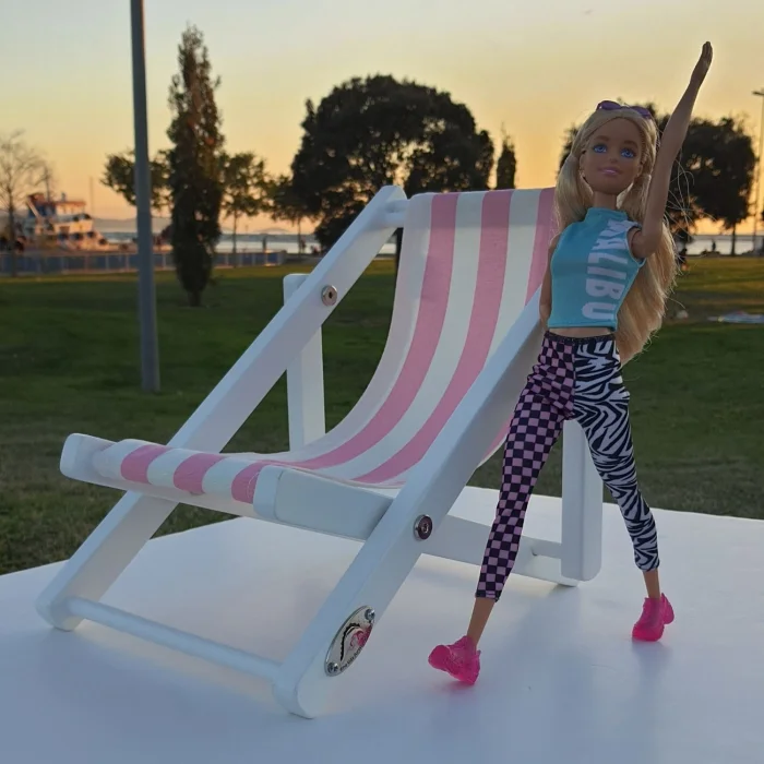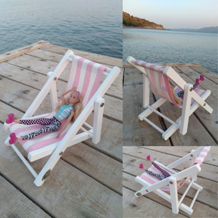 - Ürün satışına bir (1) adet pembe-beyaz çizgili minder ve bir (1) adet ahşap oyuncak bebek koltuğu dahildir.