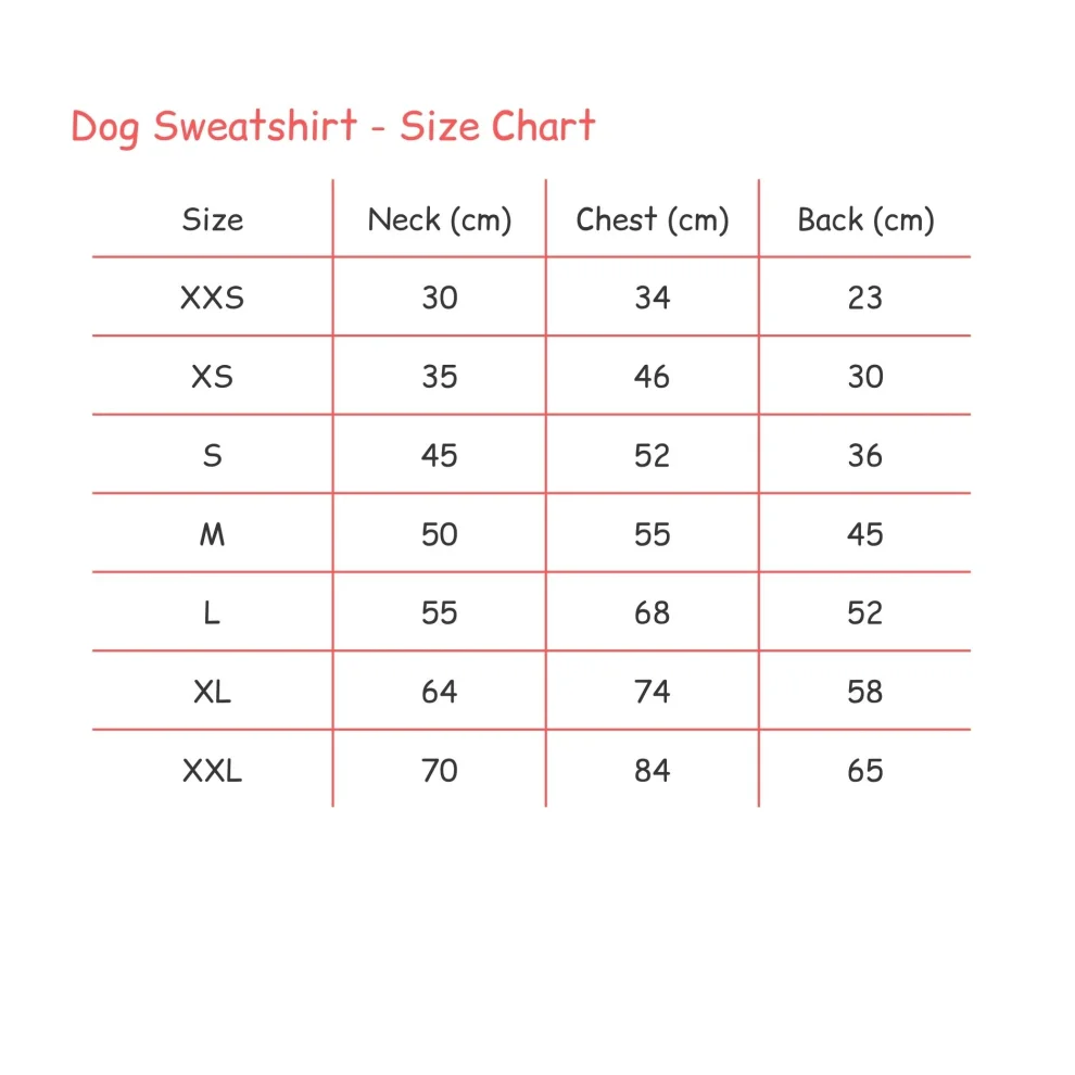%90 pamuklu, nefes alabilen, dayanıklı selanik kumaştan üretilmiştir. Tasma deliği bulunur. Nakışlı ve ribanalı. Esnek yapısı sayesinde kolayca giydirilebilir ve köpeklerin rahat hareket etmesini sağlar. Nefes alabilen yapısı sayesinde farklı mevsimlerde kullanıma uygundur. İnsan - Köpek Kombin parçasıdır. İnsan için sweatshirt ayrı satılır. Beden seçimi yapmadan önce ölçü tablosunu mutlaka inceleyiniz.