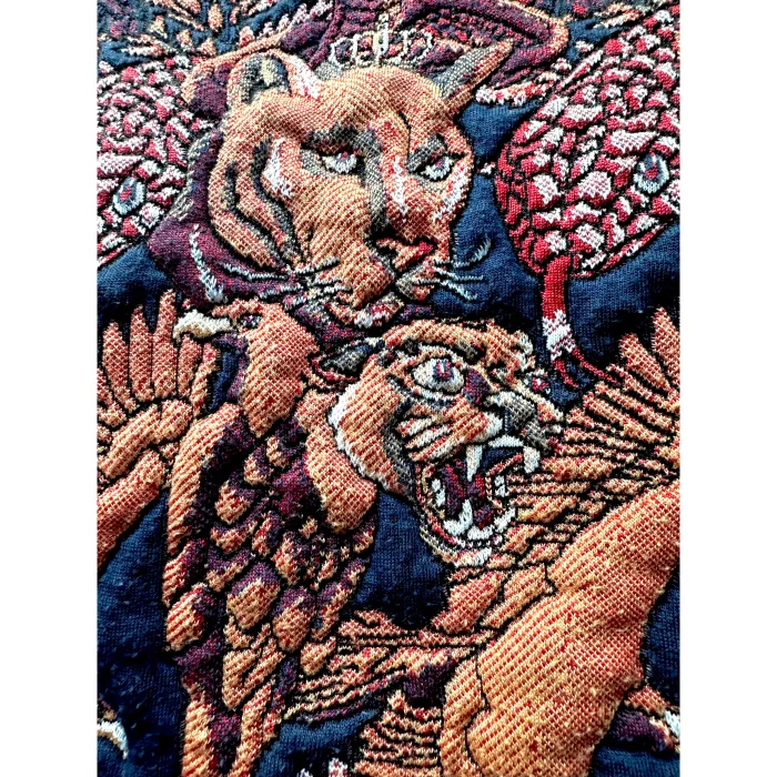 Jakarlı ve bol kesimdir. Turuncu ve lacivert detaylı vahşi tema desenlidir.