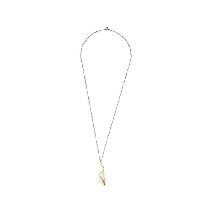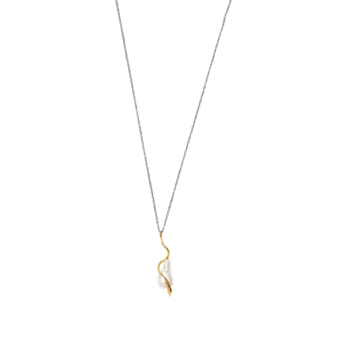 Okside gümüş zincir, 0,5 mikron 18K altın kaplama gümüş, barok inci.