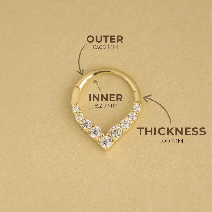 14 ayar Altın Zirkon: 9 Parça Dış Çap: 10.00 mm / İç Çap: 8,20 mm / Genişlik: 1 mm Ağırlık: 0,54 gr. *Piercingler tekli olarak satılmaktadır.