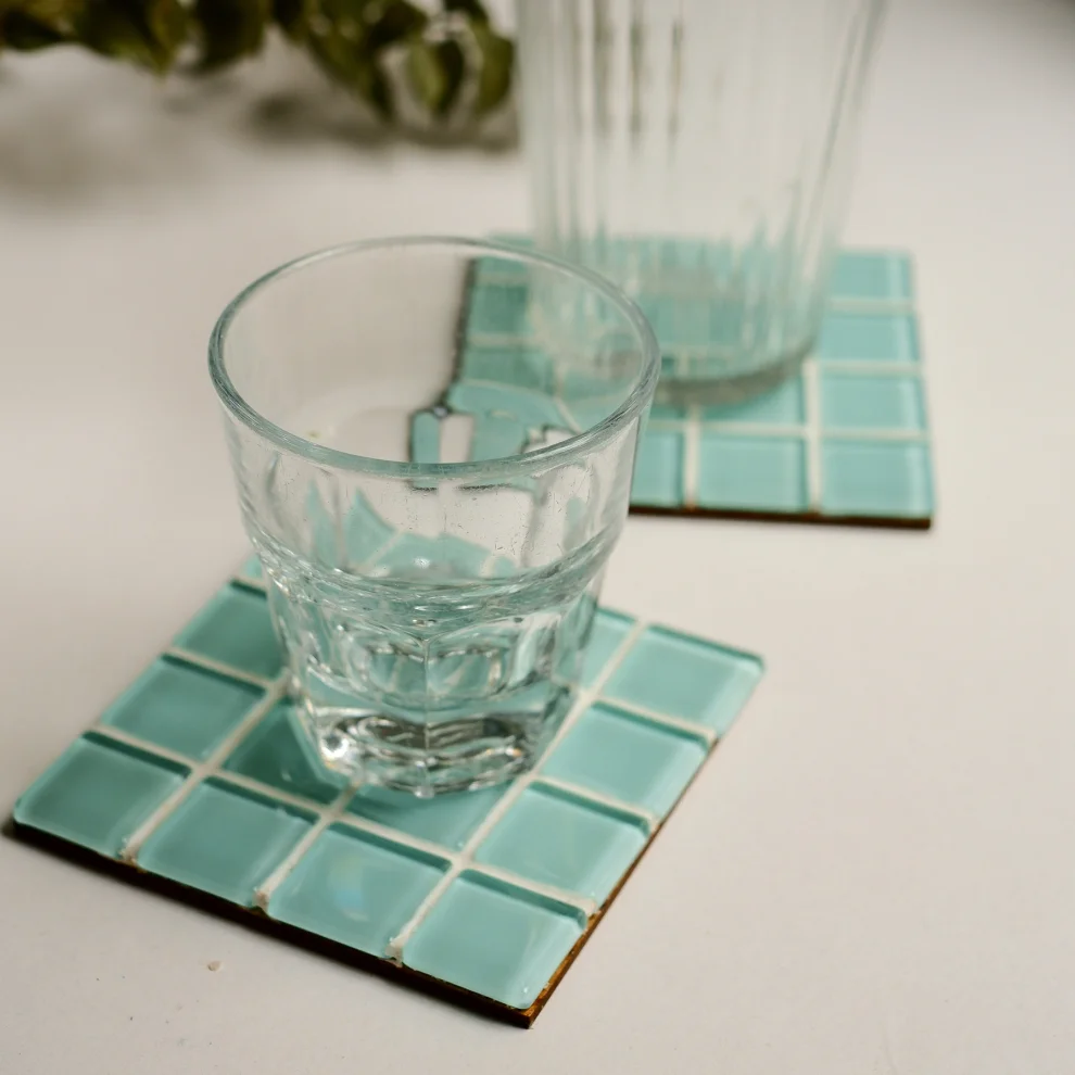 2 Adet el yapımı Mozaik Bardak Altlığı - Su Yeşili