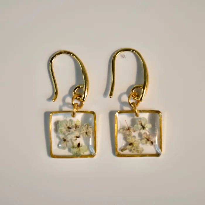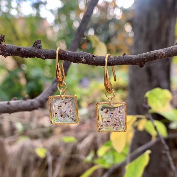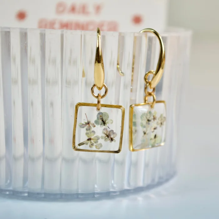 Ürün: Gerçek Çiçekli Sallatılı Teeny Weeny Kare Drop Küpe