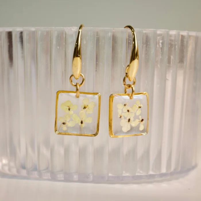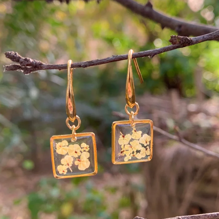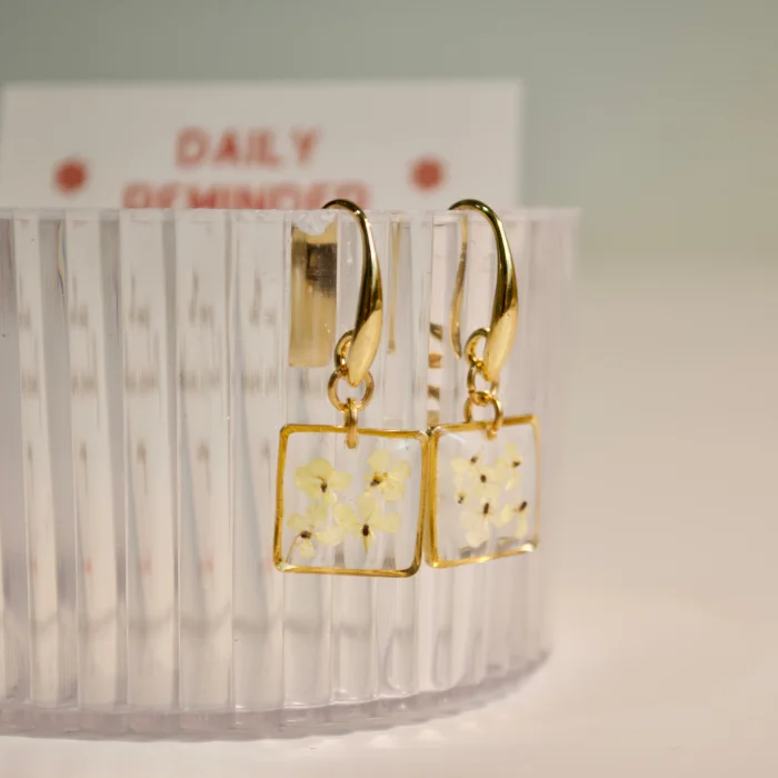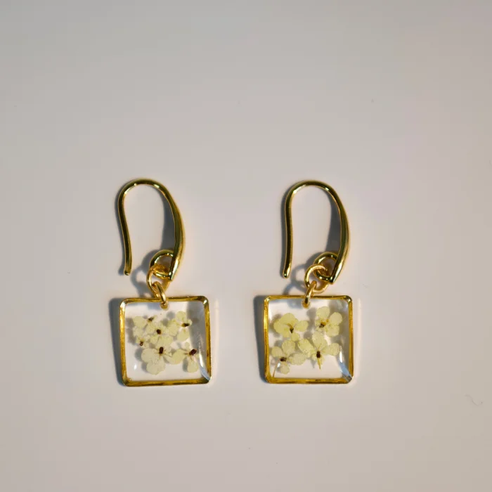 Ürün: Gerçek Çiçekli Sallatılı Teeny Weeny Kare Drop Küpe