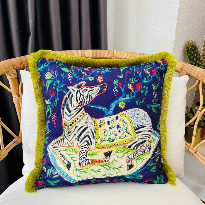 - Dekoratif Oturan Zebra Desenli Lacivert Kadife Kırlent Kılıfı ( 45 x 45 )Model ve Tasarımı GE Living firmasında saklıdır.Çift Taraflı Yastık - Kılıflarımızın arka yüzü düz renk olarak kullanılabilirHardal PüsküllüBu ürün sadece yastık kılıfı içermektedir. Yastık içi dahil değildirYastık kılıflarımız hediye paketi şeklinde gelmektedir