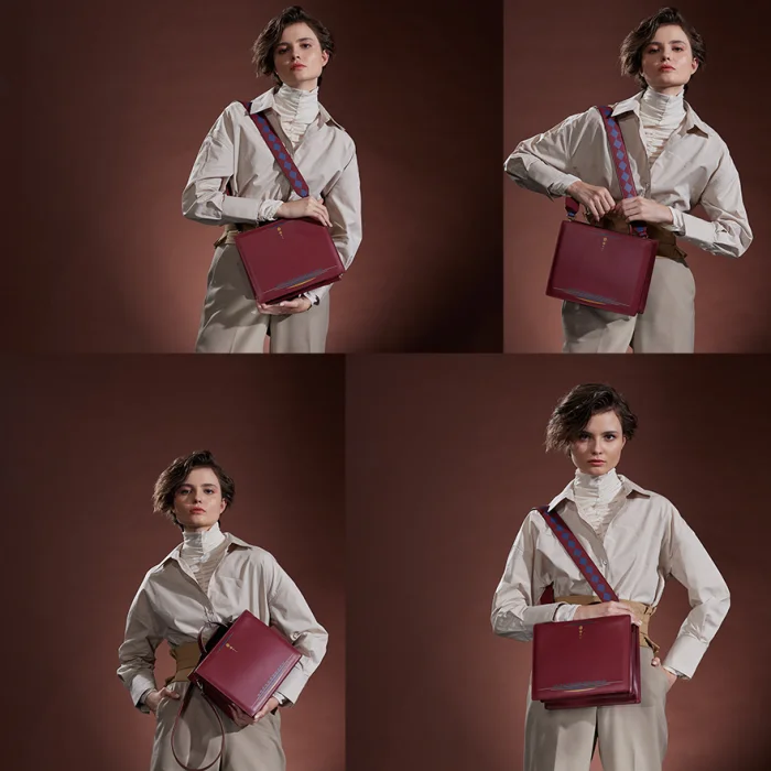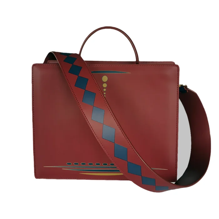 Ray Çanta – Bordo %100 Premium Kalite Yumuşak Dana Derisi. Altın Renk Çanta Aksesuarları. Takıp Çıkarılabilir Omuz Askısı. Hardal Renk Alcantara Astar. Çanta Ölçüleri: Uzunluk: 22 cm – Genişlik: 26 cm – Derinlik: 10 cm Askı Uzunluğu: 87 cm – Askı Genişliği: 5 cm
