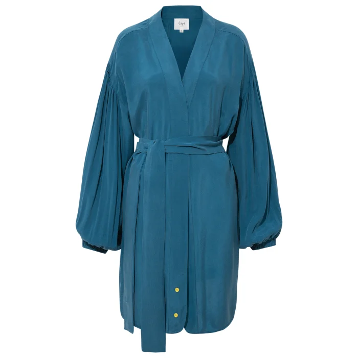Breeze Kimono hacimli balon kollu, düşük omuzlu ve seyyar kemeri ile ister mayo üzerine ister bir ceket olarak kullanılmaya elverişlidir.
