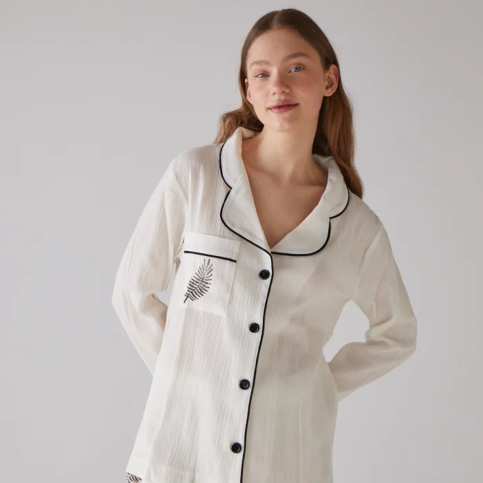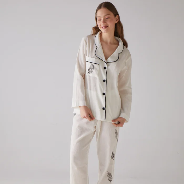 Ürün: Yaprak Desen Uzun Pijama Takımı - Il