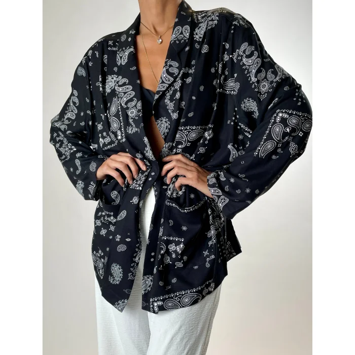 Hafif ve serin tutan doğal viskon kumaştan üretilen Oversize Ceket.