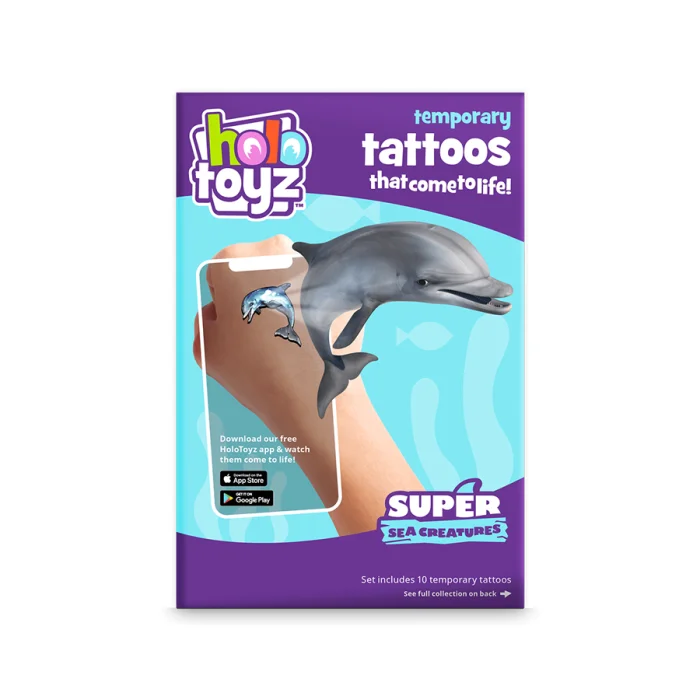 HoloToyz geçici dövmeler güvenlidir ve toksik değildir. Her pakette 10 farklı tasarım ve animasyon bulunur. İspanya’da üretilmiştir.