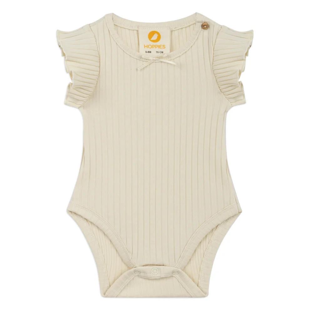 Şort %100 Oeko-tex standartında pamuklu kumaştan, body %96 pamuklu, %4 elastan kumaştan üretilmiştir. Takım body ve bloomer tarzı şorttan oluşmaktadır. Body alttan çıtçıtlı, sıfır yakalı, yandan ahşap düğme kapamalıdır. Yakada minik saten fiyongu bulunur, kolları fırfırlıdır. Şortun beli lastikli ve fırfır detaylı bulunur. Kumaşı çizgili dokuma kumaştır. Bej - krem ve Mavi - krem renk alternatifleri bulunur. Paçaları lastikli ve fırfırlıdır. Ağ kısmı geniştir, rahat hareket kabiliyeti sağlar. Body ve şort şık bir kombin oluşturmuştur. Ürünlerimiz çevreye duyarlı sürdürülebilirlik ilkesi gözetilerek üretilmiştir. Tüm aksesuarları doğal malzemedir. Kimyasal boyalar ve kanserojen maddeler içermez. Alerji yapmaz.