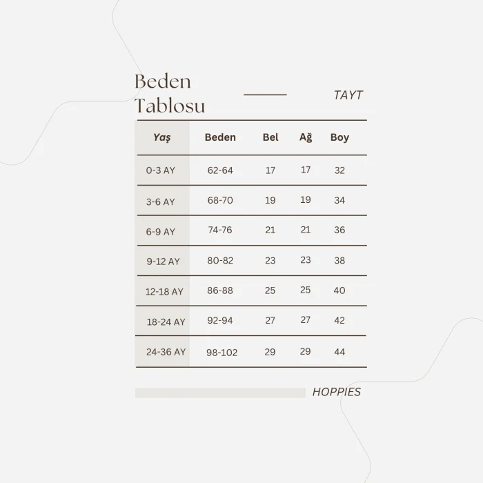 Tayt %96 Oeko-tex standartında pamuklu, %4 elastan kumaştan, tişört %100 pamuklu kumaştan üretilmiştir. Takım tişört ve tayttan oluşmaktadır. Tişört robadan fırfırlı bebe yakalı, önden ahşap düğme kapamalıdır. Eteğinde minik cepli ve kısa kolludur. Taytın beli lastikli ve fırfır detaylı bulunur. Belde minik saten fiyongu bulunur. Ağ kısmı geniştir, rahat hareket kabiliyeti sağlar. Tişört ve tayt şık bir kombin oluşturmuştur. Ürünlerimiz çevreye duyarlı sürdürülebilirlik ilkesi gözetilerek üretilmiştir. Tüm aksesuarları doğal malzemedir. Kimyasal boyalar ve kanserojen maddeler içermez. Alerji yapmaz.
