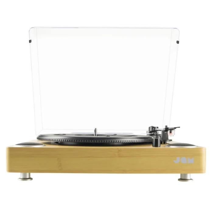 Ayarlanabilir hız seçeneği ve yerleşik hoparlörleri ile all-In-One çözüm sunan jam audio sound turntable ile çalamayacağınız plak yok! 33, 45 ve 78 rpm hız seçenekleri ile 33'lük, 45'lik ve 78'lik tüm plakları çalıştırabilir. 52mm driverları ile 150hz-15khz frekans aralığında performans gösteren, yerleşik dual hoparlörleri sayesinde plakları çalmak için ekstra bir hoparlöre ihtiyaç bırakmaz. Yine de siz başka bir hoparlörle kullanmak isterseniz, rca outputları sayesinde buna da imkan sağlar. Üzerindeki aux-In çıkışı ile müziğinizi başka cihazlardan dinlemenize de olanak verir. Koruyucu kapağı sayesinde plağınızı da kendisini de tozdan korur.