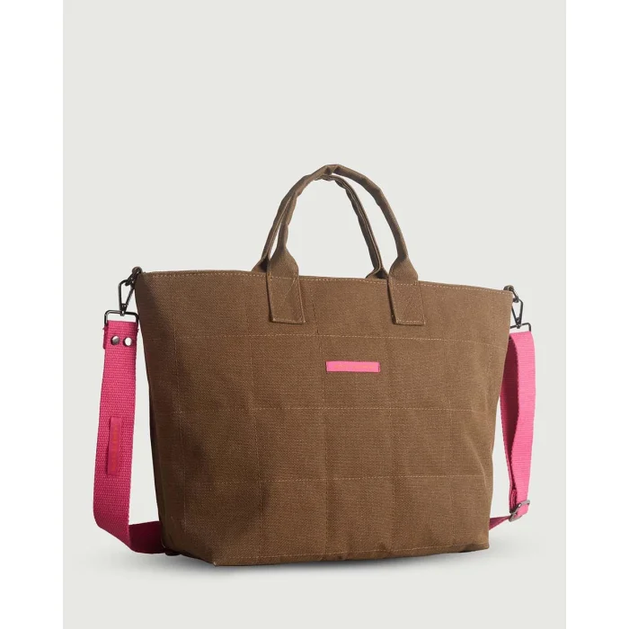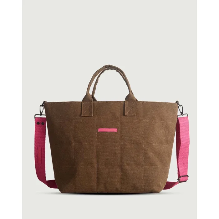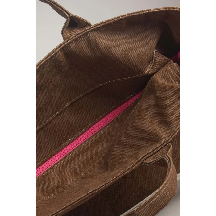 Mumlu kanvas kumaşından üretilen Huge Element Vaska Bag Kahverengi renk; tutma saplı, pembe kemik fermuarlıdır ayzı zamanda su itici özelliğe sahip iç astar ve dar dokuma pembe uzun 130 cm ve dar dokuma turuncu uzun 130 cm ayarlanabilir çanta askısı ile teslim edilmektedir.Ürün temizliği ve bakımı için; kirlenen bölgeye ılık ve nemli bir bez yardımı ile ovalama yapılır. Kuruması için direkt güneş ışığından uzakta serin ve kuru yerde kurumaya bırakılmalıdır. İnatçı lekeler için profesyonel destek alınmalıdır. Çamaşır makinesinde yıkanması ve ütü tavsiye edilmez. Türkiye'de tamamen kadın çalışanların emeği ile üretilmektedir.