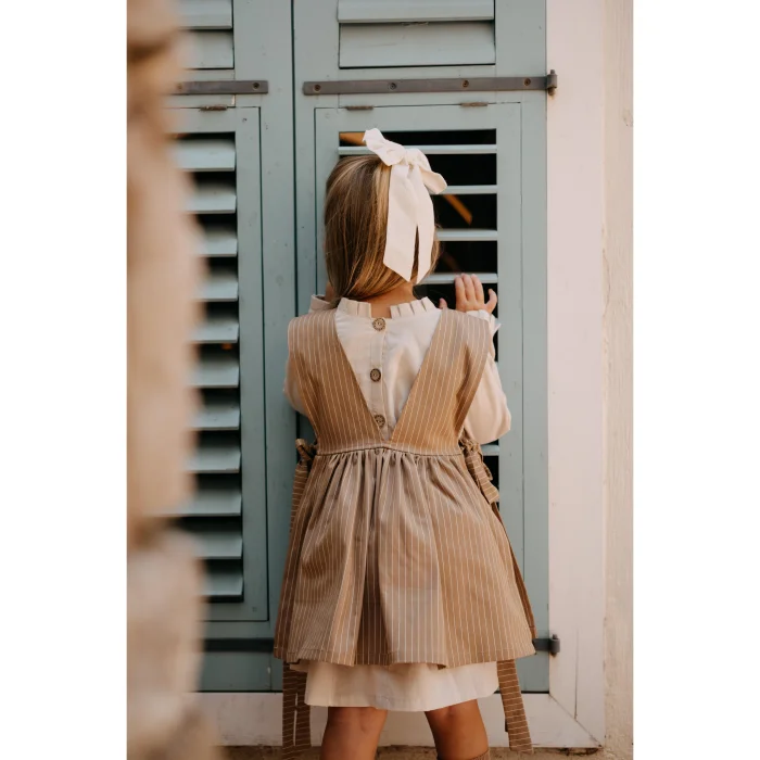 Parçaları ayrı kullanılabilir, içi ekoseli üstü lacivert bağlama detaylı nostaljik elbise.