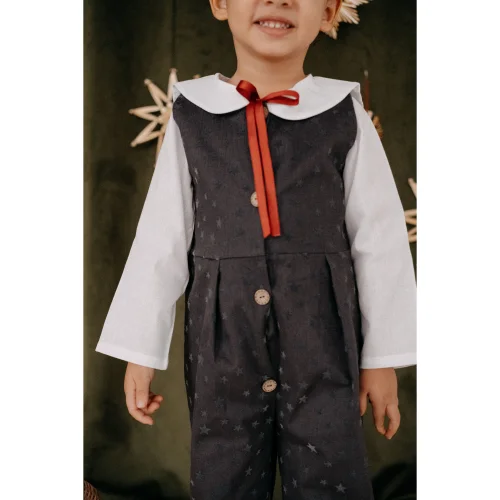 Rahat kesim, önden düğmeli yeni yıl konseptli tulum.