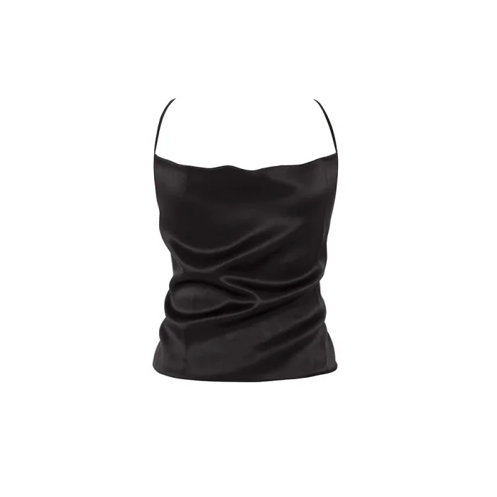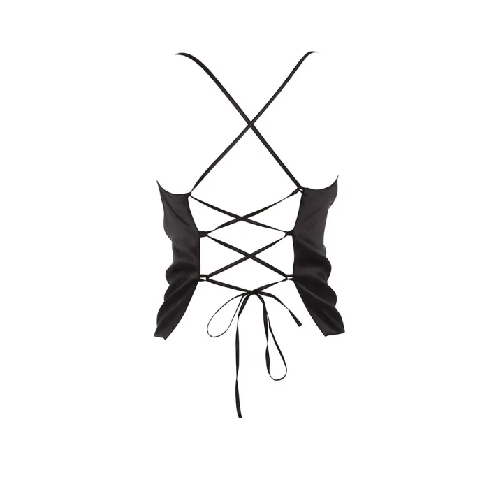 Sırtı açık, ip bağlamalı %100 ipek cropped bluz