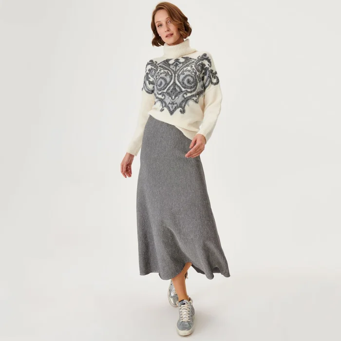 Ürün: Gümüş Sim Detaylı Triko Etek