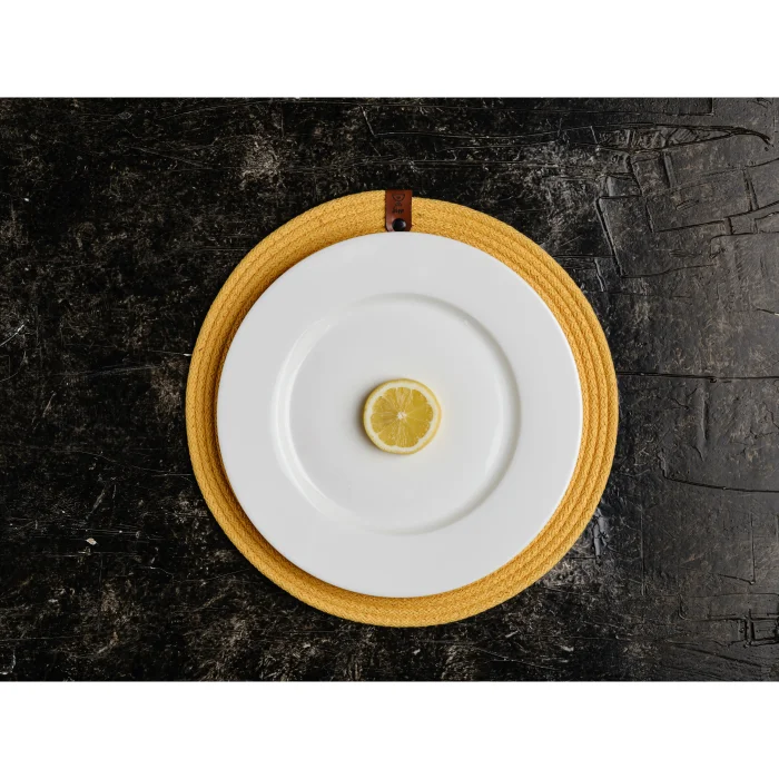 Amerikan servis pamuk ip kullanılarak tamamen elde üretilmiş olup, 32 cm çapındadır. Sofralarınızı renklendirmek için farklı renklerde tek tek satın alarak kendi kombinasyonunuzu oluşturabilirsiniz.