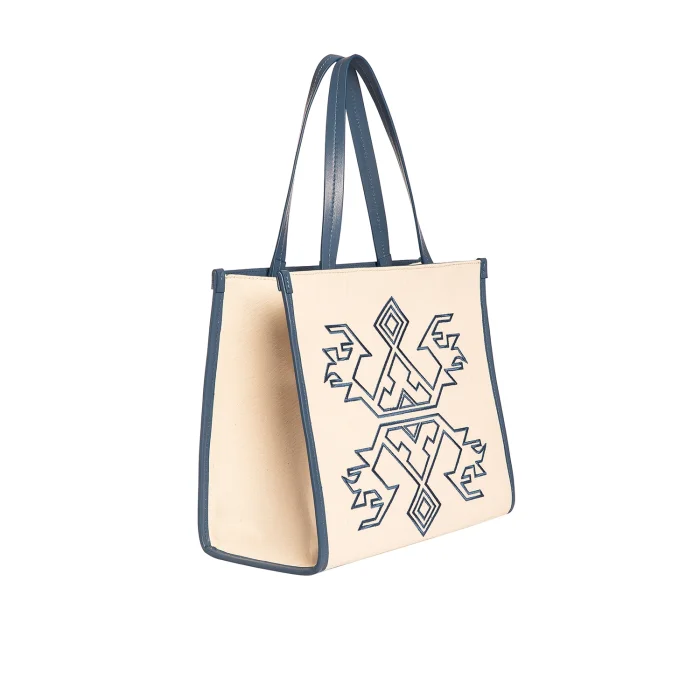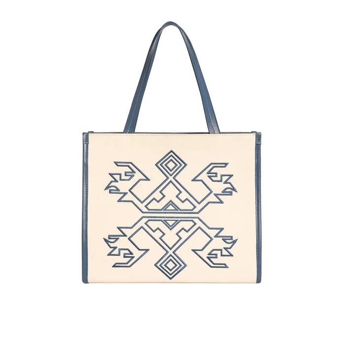•Elde & omuzda kullanıma uygun nakışlı kanvas kumaştan deri detaylı büyük boy çanta