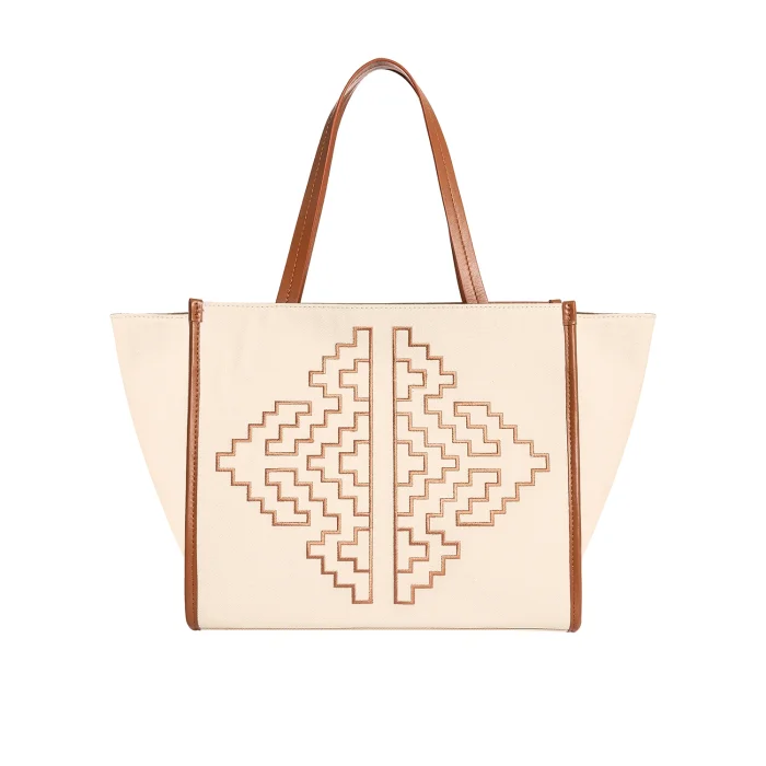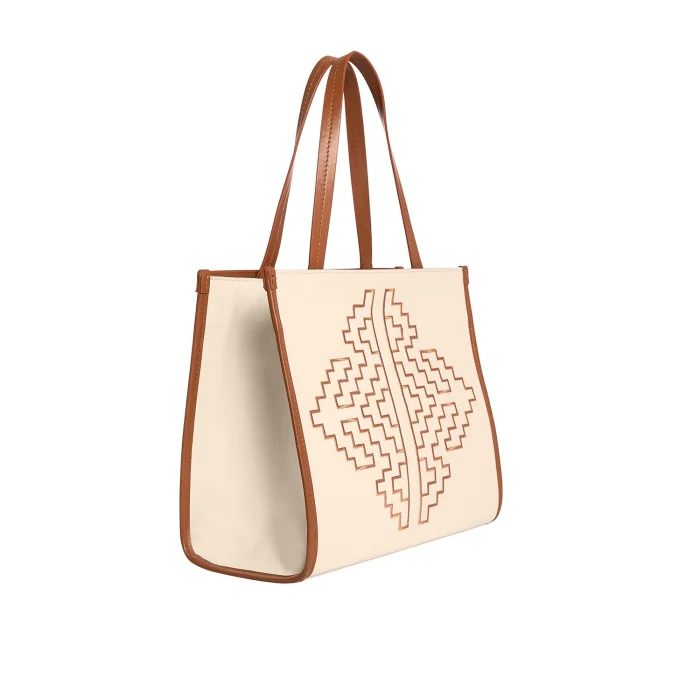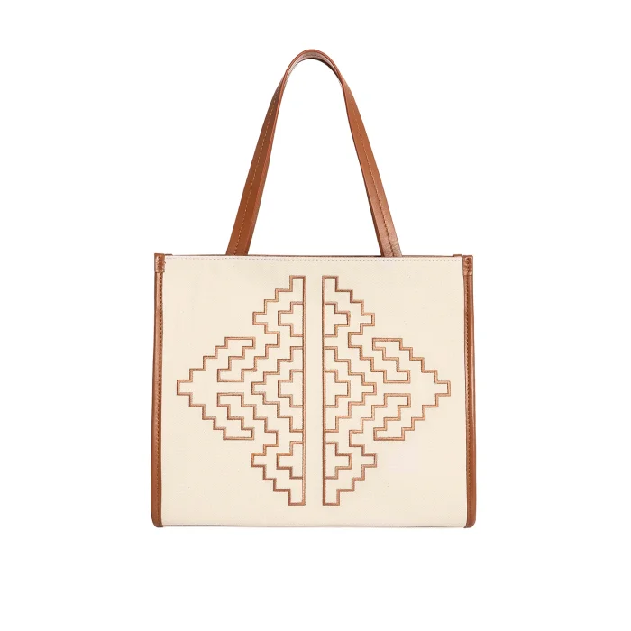 •Elde & omuzda kullanıma uygun nakışlı kanvas kumaştan deri detaylı büyük boy çanta