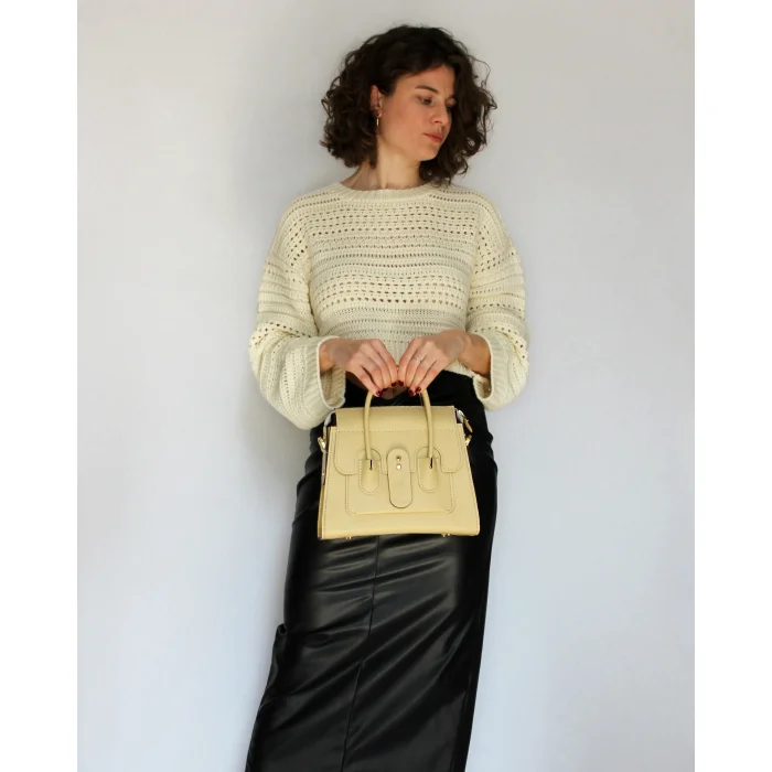 Kullanılan Malzemeler: Hakiki Dana Derisi, Polyester İp, Polyester Mumlu İp, Light Gold Metal Aksesuar. Astar Malzemesi: Hakiki Dana Derisi.