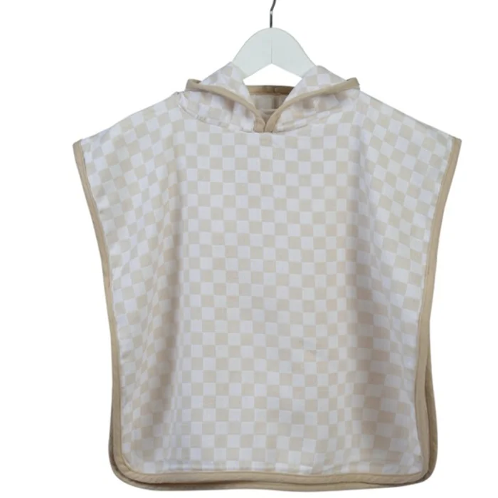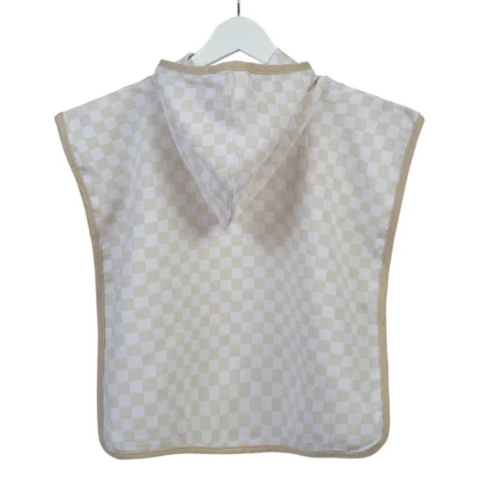 Organik Dama Desenli Kapüşonlu Panço