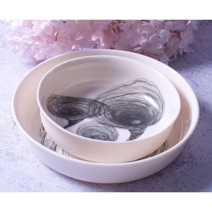El yapımı porselen büyük boy kase ve küçük boy kase set İçi parlak sırla kaplı, dışı mat kadife dokulu. Kullanılan bütün malzemeler gıdaya uygundur.