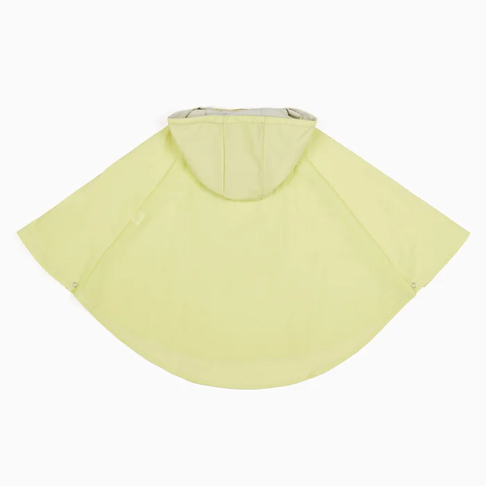 Lally Things yağmurluklarımızda su itme özelliği olan kumaş kullanılmıştır. Panço şeklindeki yağmurluklarda kol yerinde çıt çıtlar vardır; isteğe göre kollu da kullanılabilir. Kapüşonlu geniş kalıplıdır. Ön kısmındaki kapaklı geniş cep içine yağmurluğu tamamen sokarak çanta içinde kolayca taşınır, çok hafiftir ve kırışma yapmaz. Yağmurluk boyu kapüşon hariç 55 cm, genişliği ise 90 cm dir. 2-6 yaş çocuklar için standart bedendir.