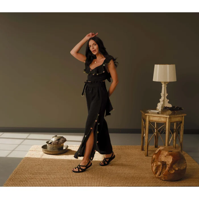 %100 El yapımı olan Adalya Pantolon, ham keten kumaşı İstanbul’da titiz bir Artizanın elinde şekil alıp; sonrasında da yetenekli bir Türk kadınının parmak uçlarında hayat bulmuştur.